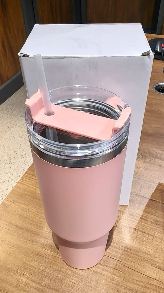 1200 ML Peach Extra Large Insulated Travel Mug with Handle and Straw – Double Wall Thermo Flask Style Tumbler for Hot & Cold Beverages – Spill-Resistant Lid – Portable Steel Mug for Gym, Office, Car & Outdoor Use (1200ML - 1 Pc / Peach Color)